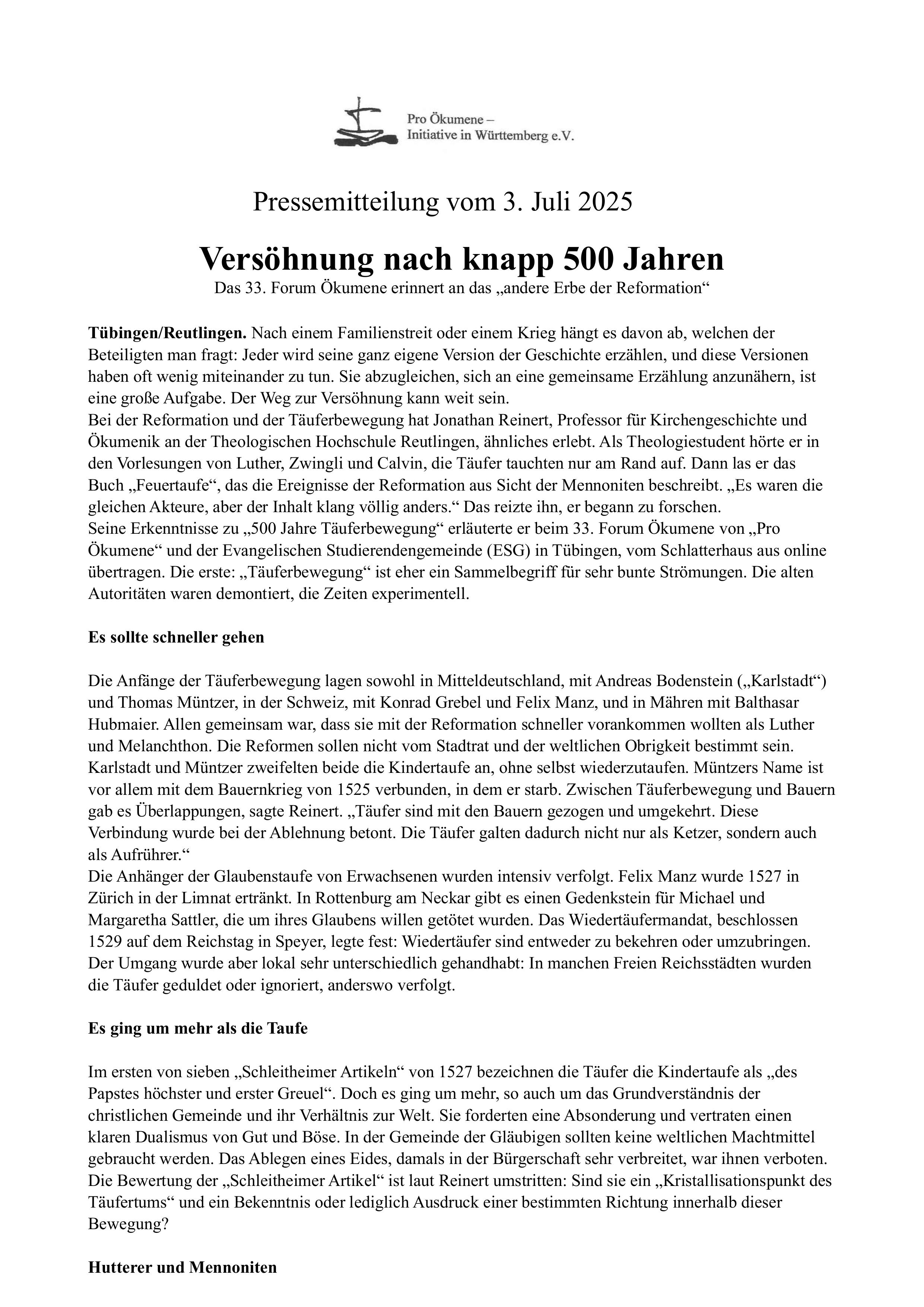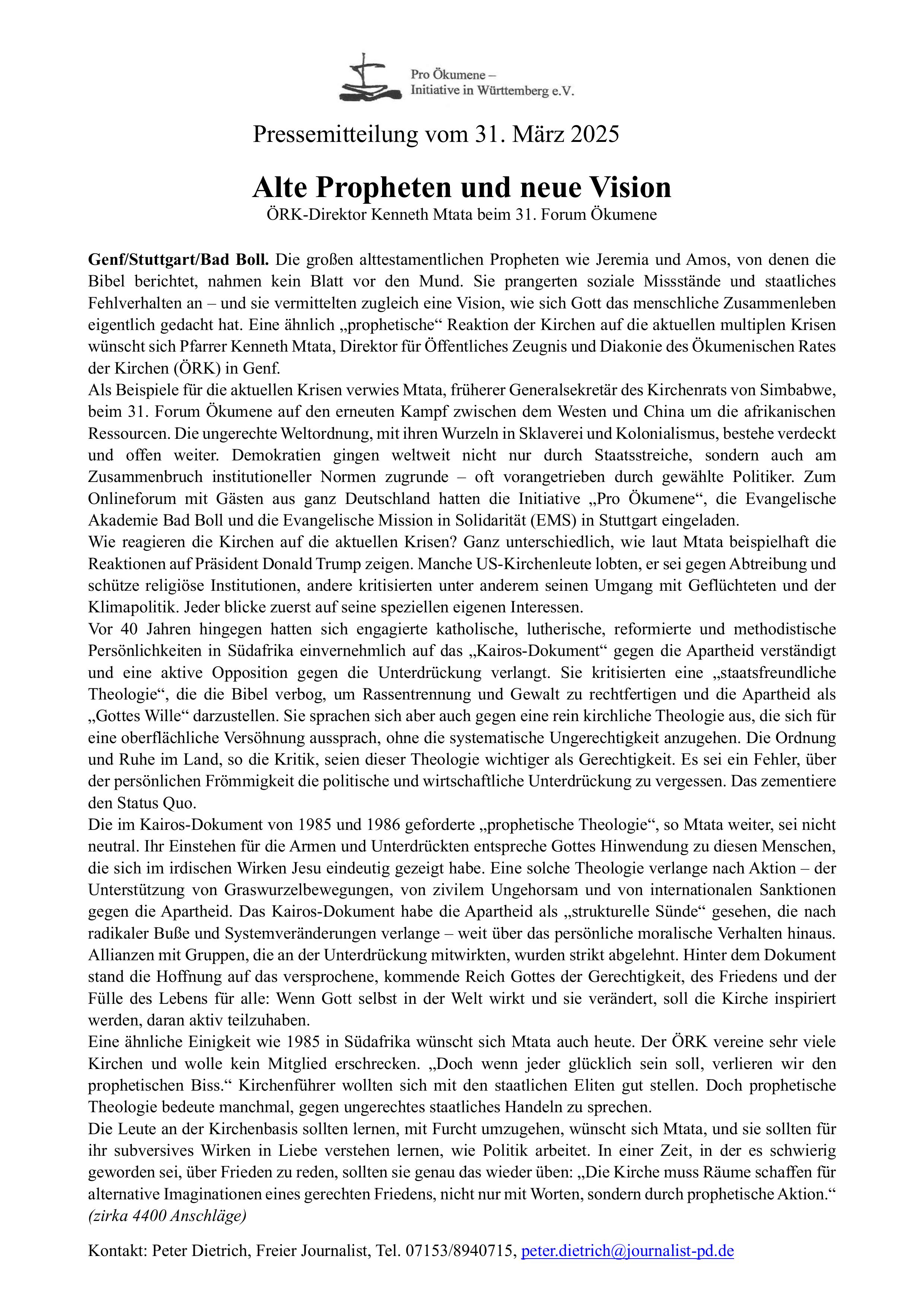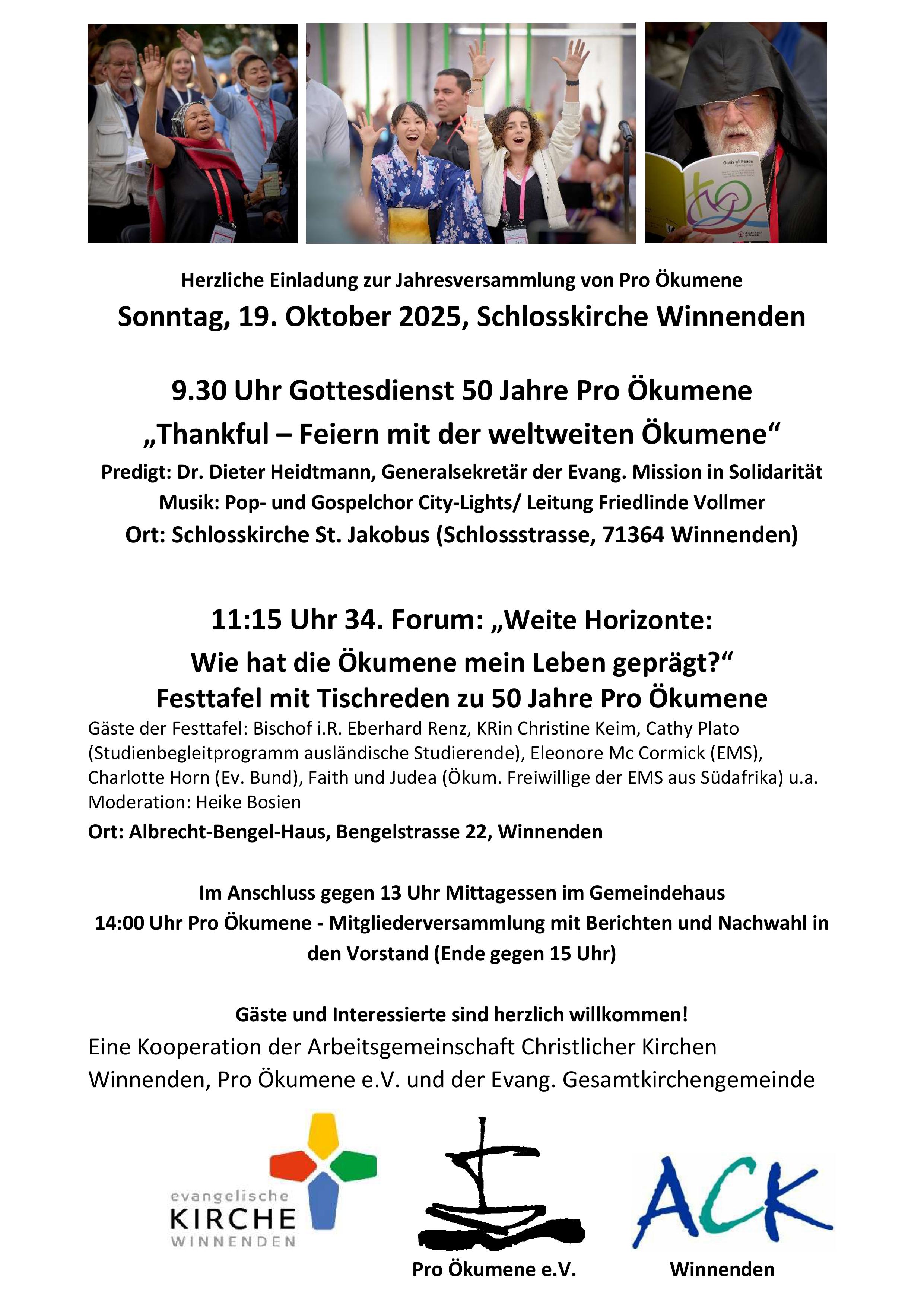 all diesen Tragödien zu Wort meldet und zum "Beten und Tun des Gerechten" aufruft. Als Pro Ökumene setzen wir uns mit unseren "Forum Ökumene"-Veranstaltungen mit einer großen Bandbreite an Themen, Herausforderungen und Kontexten auseinander.